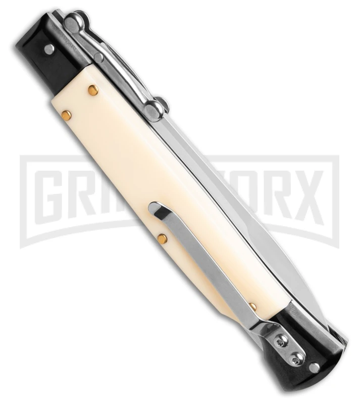 AKC World 9″ Swinguard Ivory/Black Bolsters W/Box Automatic Knife – Polish