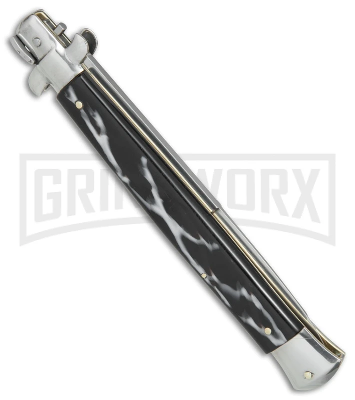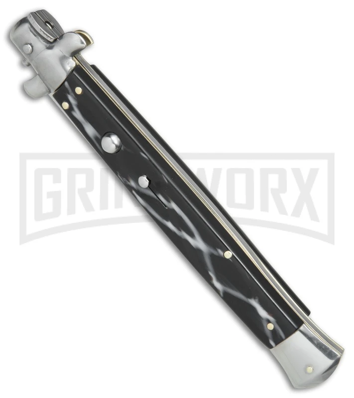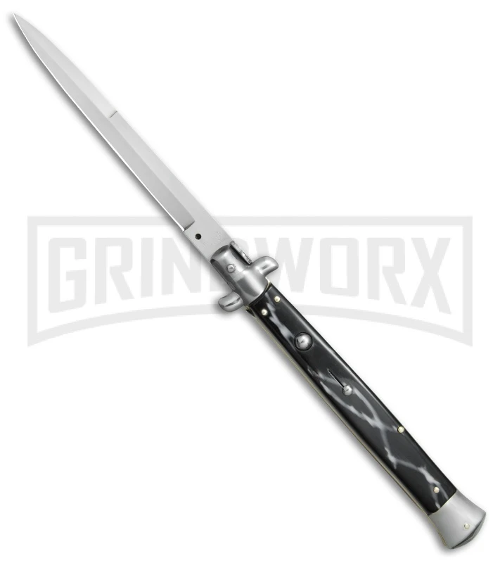 SKM/AB 9″ Italian Stiletto White Pearlex Automatic Knife – Satin Dagger