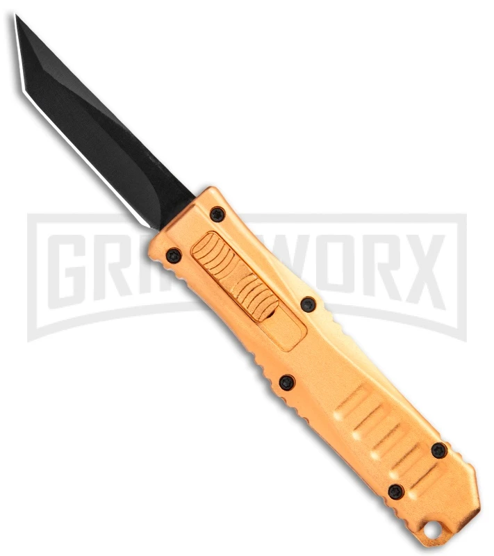 Mini Marvel Gold DA/OTF Automatic Knife – Tanto Black Plain
