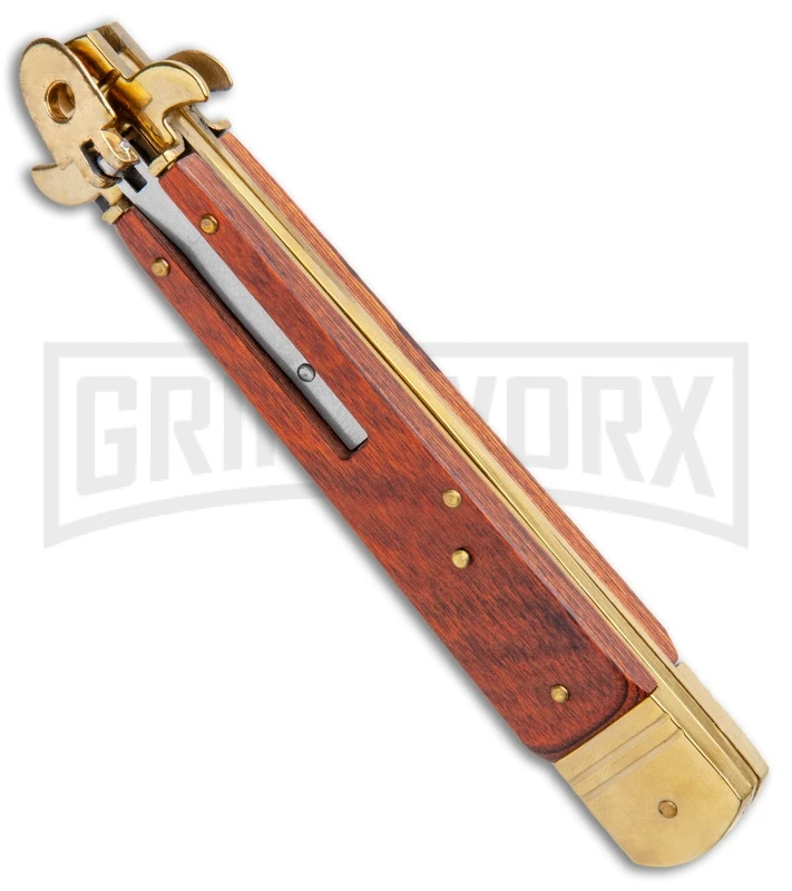 FRANK B. 9″ Italian Stiletto Simulated Briar Wood Automatic Knife – Bayonet