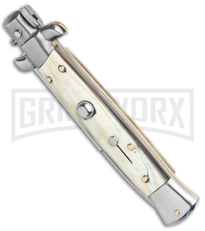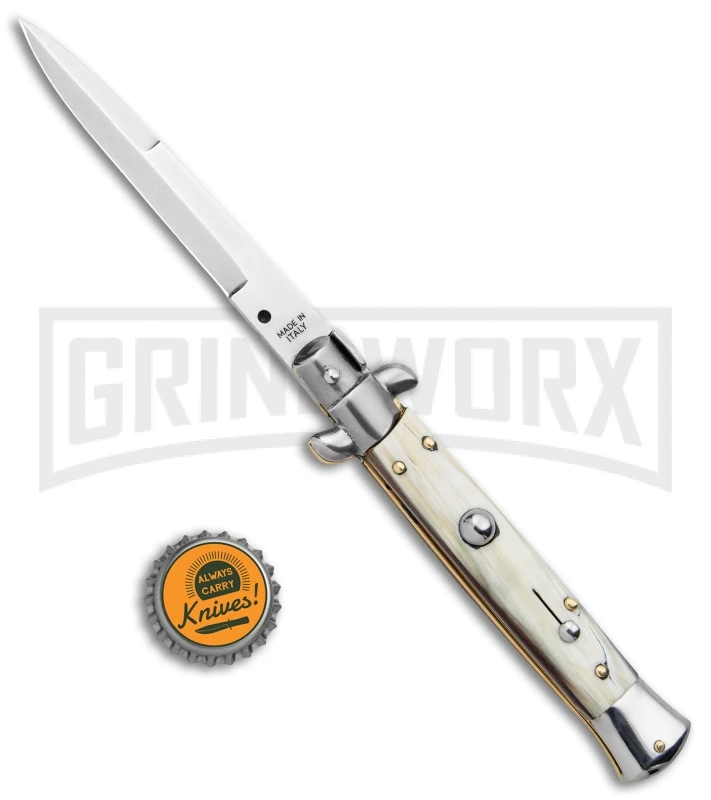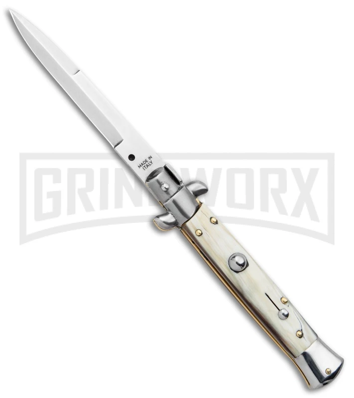 SKM 9″ Italian Stiletto Honey Horn Automatic Knife – Bayonet